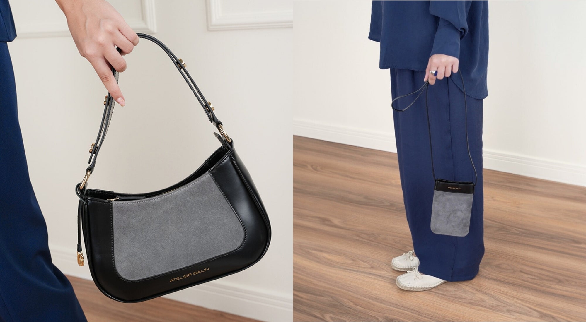 Two finishes. One signature design. Gold or silver hardware, for every occasion.